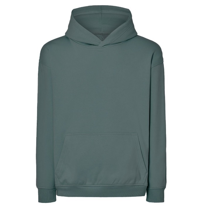 Gładka, bluza męska OVERSIZE w kolorze zielonym morskim z kapturem i kieszenią do nadruku