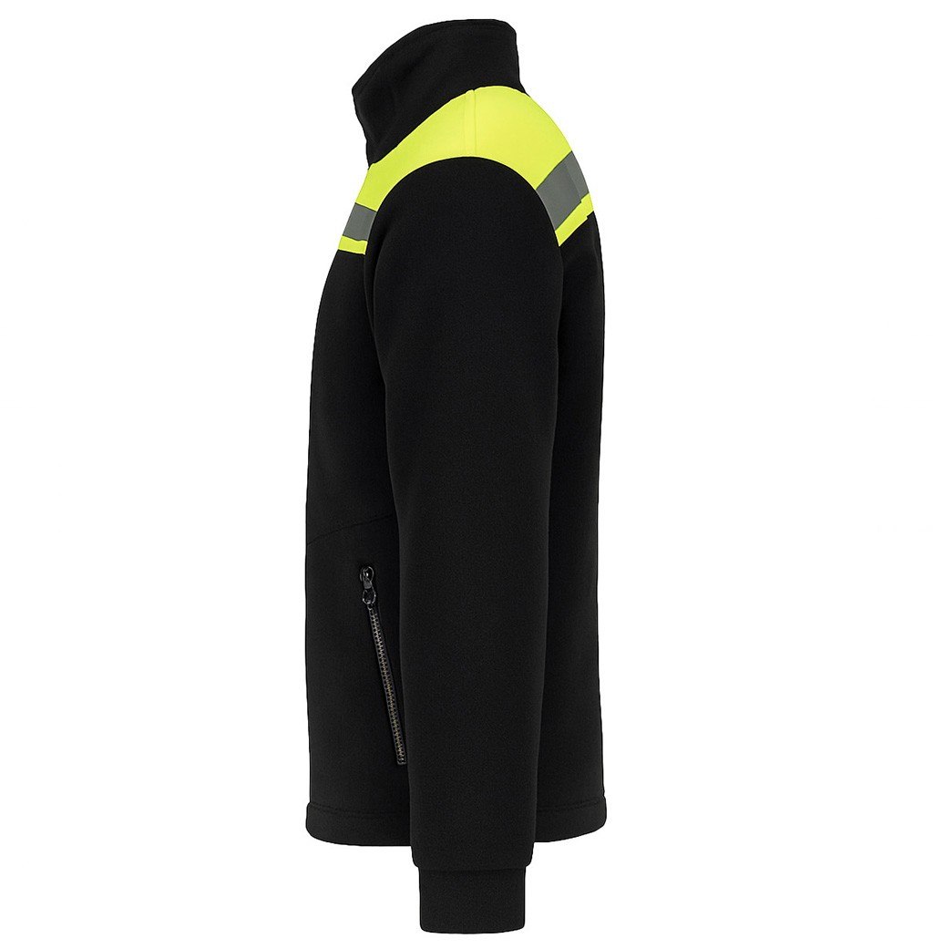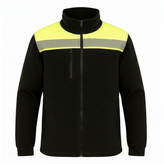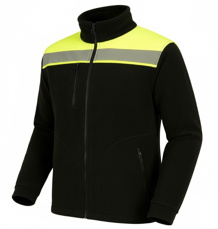 Rozpinana czarna bluza polarowa z odblaskowymi wstawkami to świetne połączenie ciepła i bezpieczeństwa. Ważną cechą produktu są refleksyjne pasy i neonowy materiał wszyty na ramionach. Widoczna bluza sprawdzi się do prac drogowych, na magazynie, placu budowy czy w transporcie. Zapewni także dobrą widoczność podczas spaceru po lesie lub wycieczki w góry.