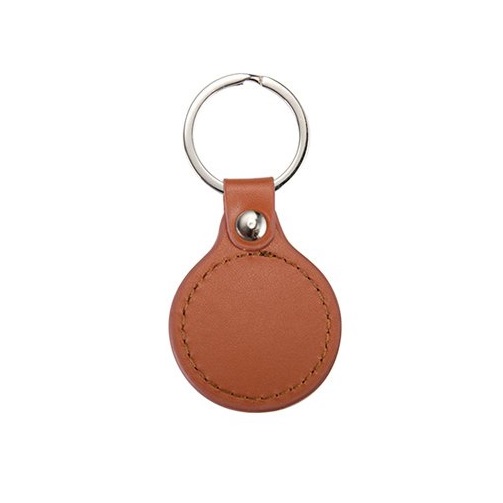 Brelok z ekoskóry, z okrągłą metalową blaszką do nadruku