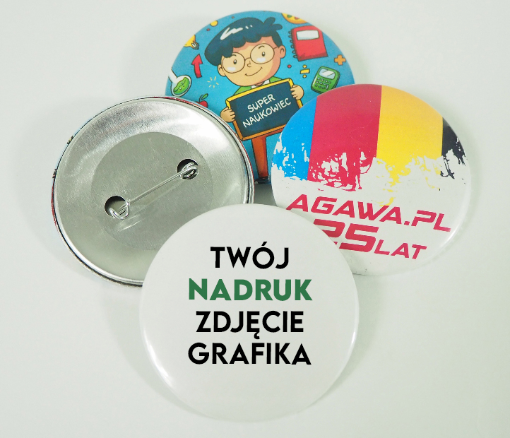 Aluminiowe przypinki na agrafce to bardzo popularny drobiazg. Buttony stanowią ciekawy gadżet reklamowy (np. jako wsparcie kampanii) lub upominek marketingowy dla klientów (rozdawany jako gratis do zakupów, podczas targów, degustacji, szkoleń i innych okazji). Z równym powodzeniem badziki sprawdzą się w roli pamiątki różnego rodzaju wydarzeń: pielgrzymki, rajdy, zjazdy, wesela, studniówki, imprezy sportowe i kulturalne. Szeroki wybór komponentów znaczków (znaczki na agrafce, z magnesem, z lusterkiem, z otwieraczem, z klipsem) gwarantuje niepowtarzalność gadżetów.