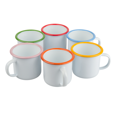 • Uniwersalne emaliowane kubki prezentują się zgrabnie, posiadają poręczne ucho oraz zaokrąglony rant