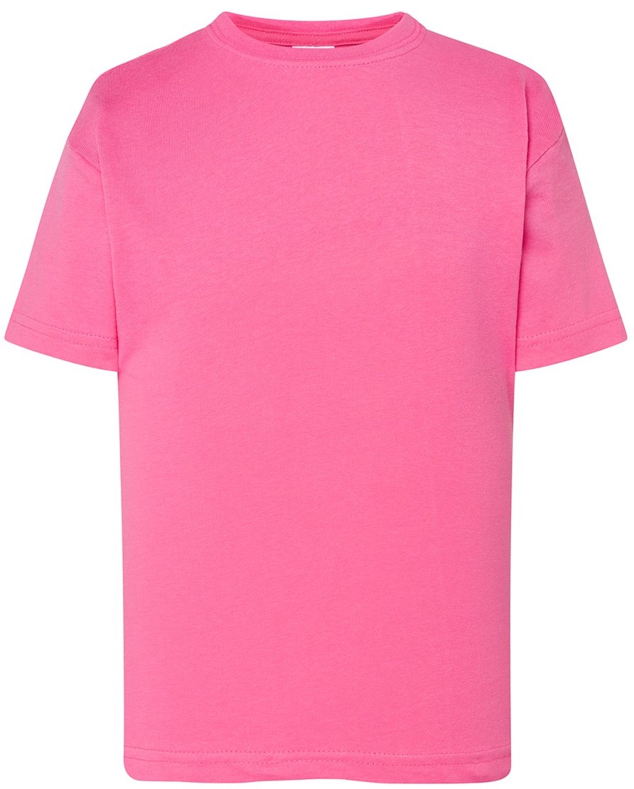 • Dziecięce t-shirty do naniesienia dowolnych nadruków posiadają podwójne szwy na ramionach, ściągacz wzmocniony lycrą oraz taśmę wzmacniającą.