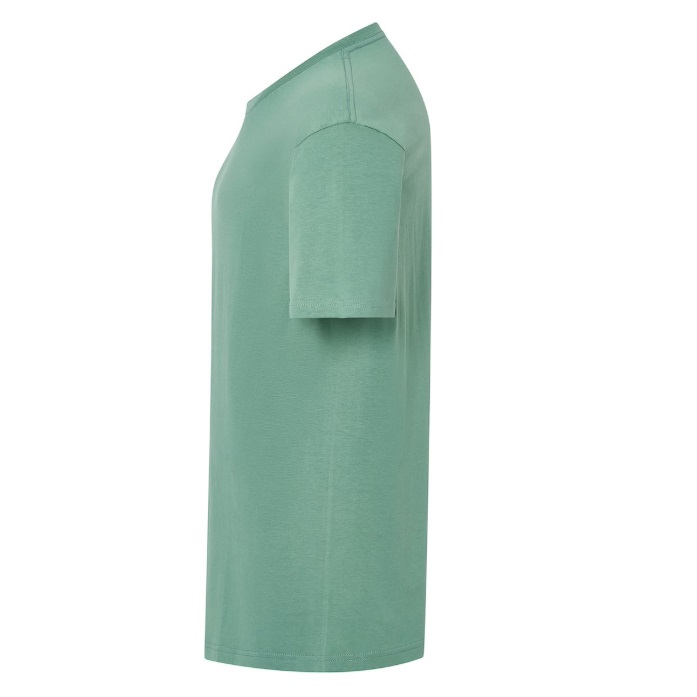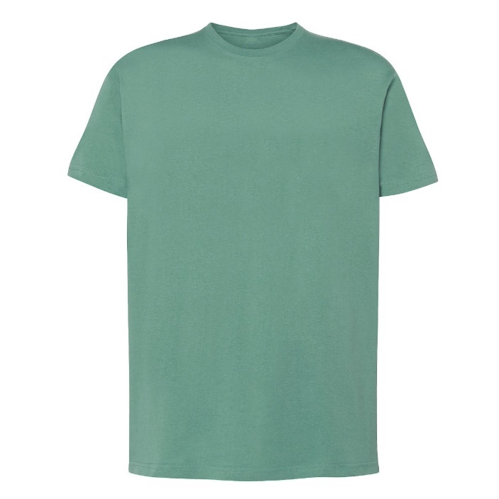 Męskie t-shirty do naniesienia dowolnych nadruków posiadają podwójne szwy na ramionach, ściągacz wzmocniony lycrą oraz taśmę wzmacniającą; brak szwów bocznych.
