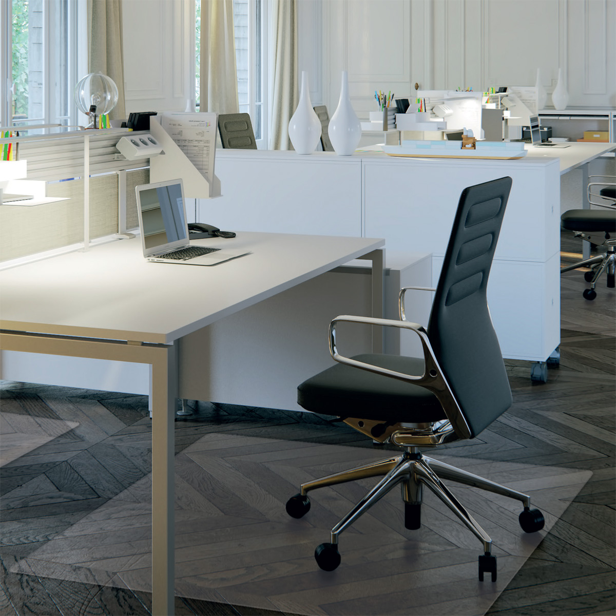 Fotele i krzesła obrotowe na twardych kółkach mają tendencję do niszczenia podłóg. Ich plastikowe elementy powodują zarysowania i odbarwienia, czyniąc panele, parkiety, płytki czy wykładziny nieestetycznymi. Mechanicznym uszkodzeniom podłóg skutecznie zapobiegają ochronne maty podłogowe. Taki ochraniacz podłogi umieszcza się pod krzesłem czy fotelem, izolując kółka od posadzki. Podkładki ochronne są niezastąpione w utrzymaniu dobrego stanu podłóg i dywanów w pomieszczeniach biurowych, gabinetach, szkołach i domach.