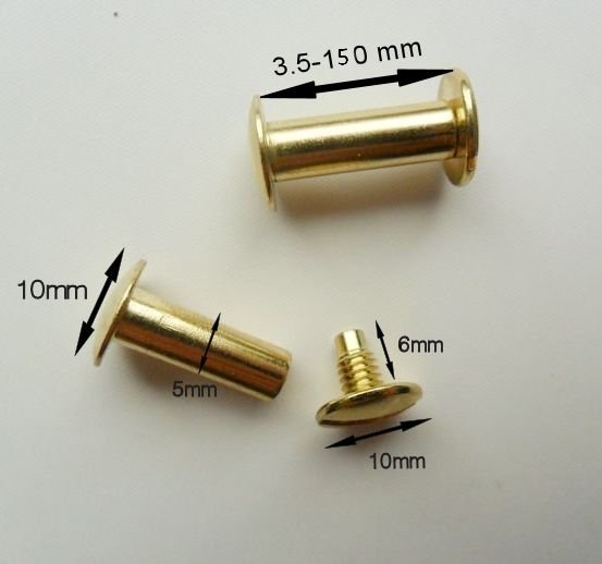Złote metalowe śruby introligatorskie - nity skręcane