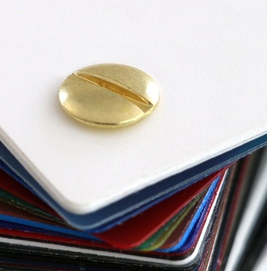 Metalowe śrubki mocujące świetnie sprawdzą się do łączenia grubszych wzorników np. farb lub próbników tkanin - papierowych lub laminowanych.